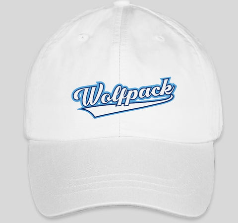 Relaxed Unstructured Profile Heavyweight Chino Cotton Twill Precurved Visor Cotton Sweatband Wolfpack embroidered on front of hat  Adjustable Cloth Backstrap w/ Comfort Buckle